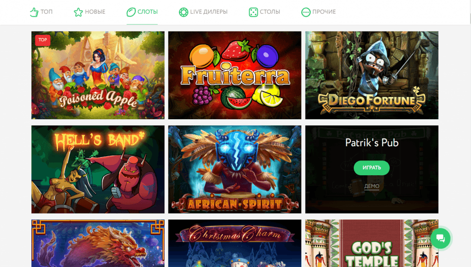 - Слоты. Здесь представлены видеослоты, без которых трудно представить любой игорный дом.